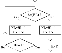 Flags: CY Z PV S N H . ~ ~ ~ 1 ~ (~ = changes, . = no change) And the flags: if byte found: Z=1; HL - address of next byte; BC - figure out by yourself. not found: Z=0