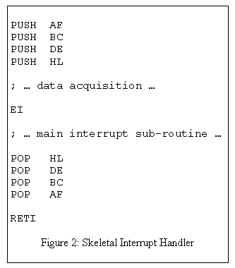 A skeletal interrupt handler sub-routine is shown in Figure 2.